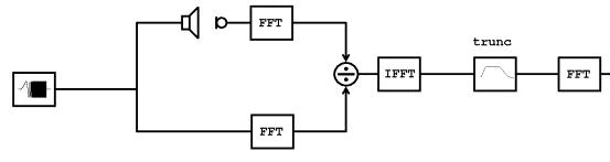 A logarithmic sweep is fed to the loudspeaker and recorded by the microphone. The spectrum (aka the fast Fourier transform (FFT)) of the microphone signal is compared to a reference spectrum of the sweep. This reference signal can come directly from the spectrum, or from a loopback signal on the soundcard. The relation between the microphone signal and the reference signal reveals the frequency response of the loudspeaker-microphone chain. This frequency response is transformed back to the time domain by the inverse fast Fourier transform (IFFT), resulting in the impulse response of the loudspeaker-microphone chain. The impulse response can be windowed such that late reflections from the room are discarded. The spectrum of this truncated impulse response then results in the anechoic response of the loudspeaker-microphone chain.